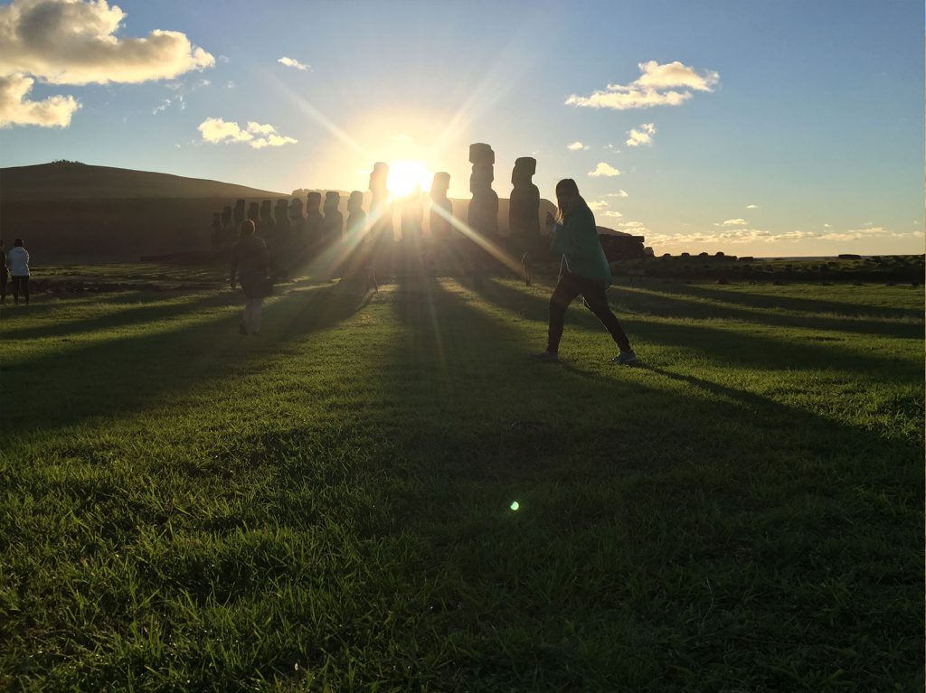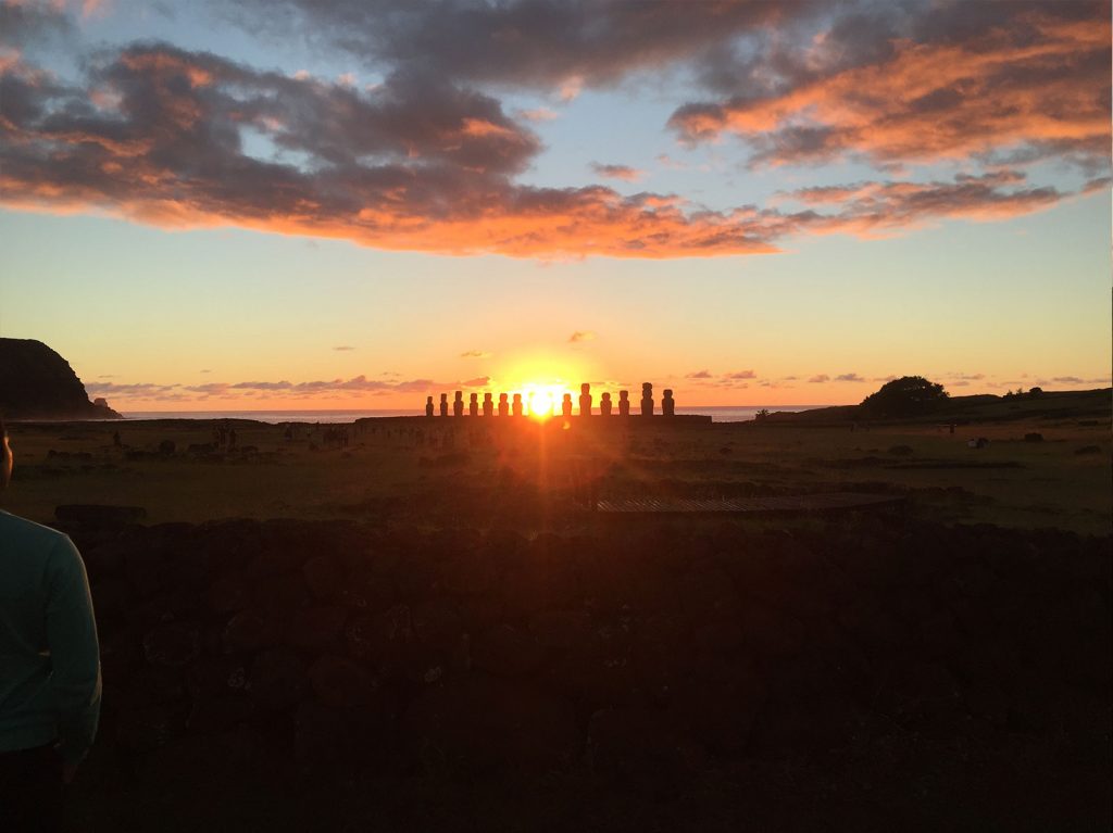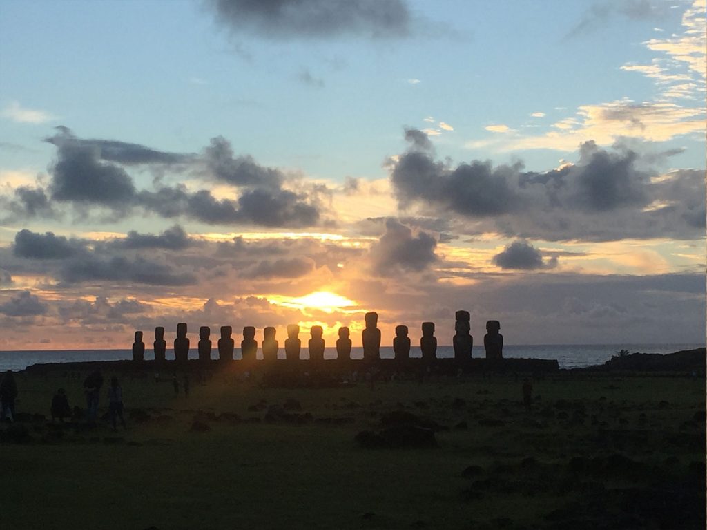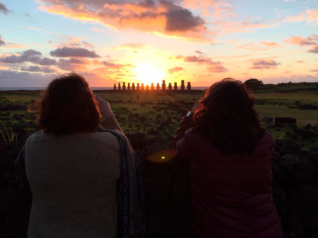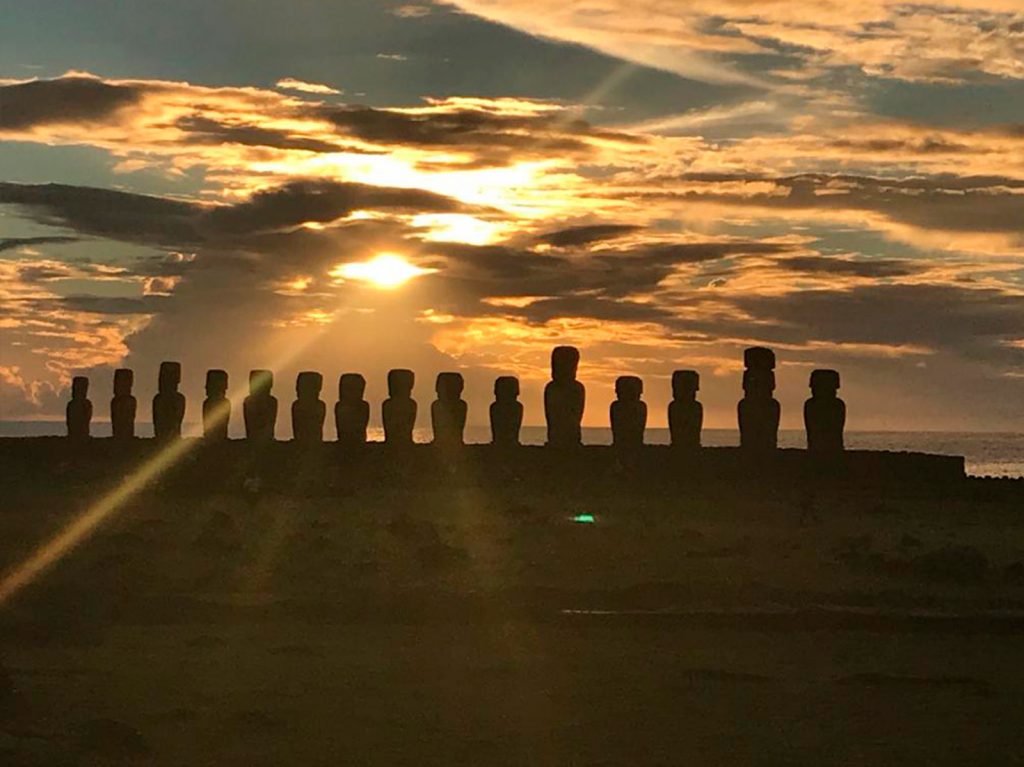 Vive uno de los mayores espectáculos de Isla de Pascua, la salida del sol junto a la plataforma megalítica más grande de la Polinesia, el Ahu Tongariki. Para ver este evento, hay que llegar antes del amanecer para esperar la salida del sol tras los impresionantes 15 Moai, y luego despedirnos junto a una bebida caliente acompañado de un queque tradicional Rapa Nui, conocido como Po’e.