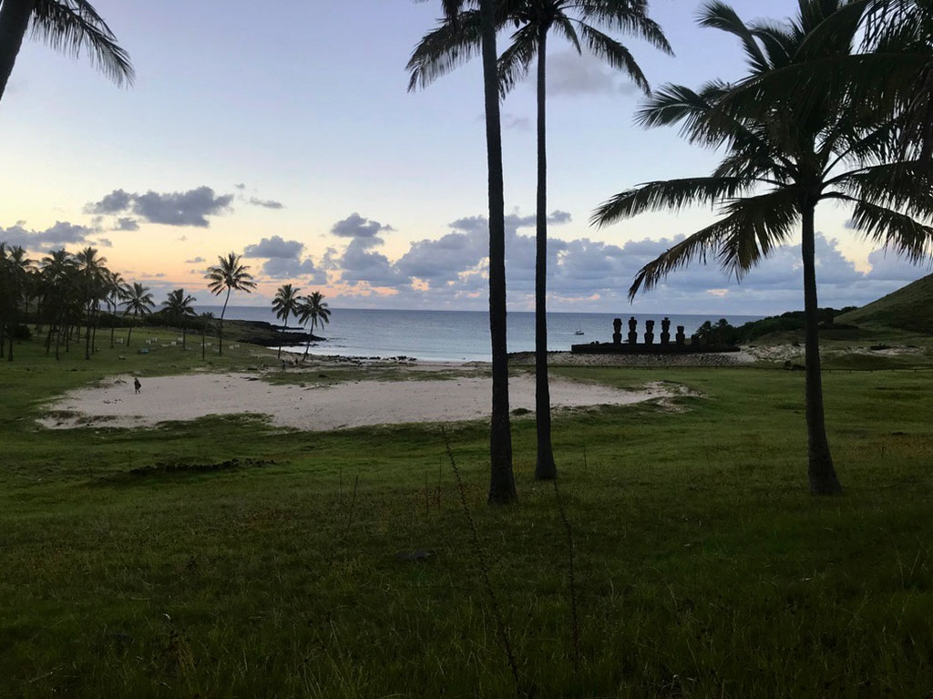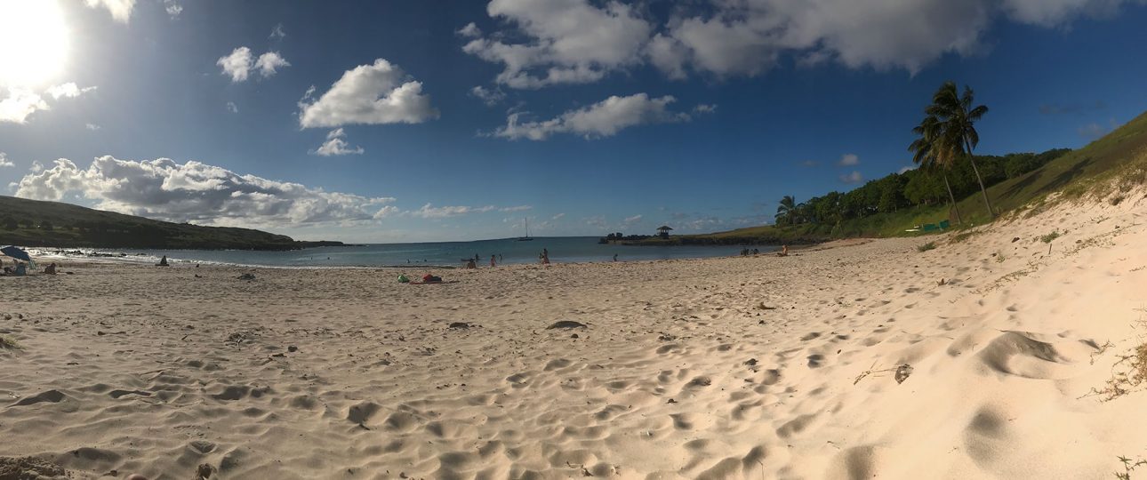 Al contrario de los que muchos piensan, la Playa de Anakena, se encuentra alejada del pueblo de Hanga Roa, a unos 25 minutos en vehículo y no hay señal de teléfono, por eso te recomendamos esta alternativa segura de transporte, para que en el camino disfrutes del paisaje y puedas descansar sin preocupaciones. La playa es apta para el baño con una temperatura es de 20°C aprox. tiene aguas cristalinas y arenas blancas y oleaje tranquilo.