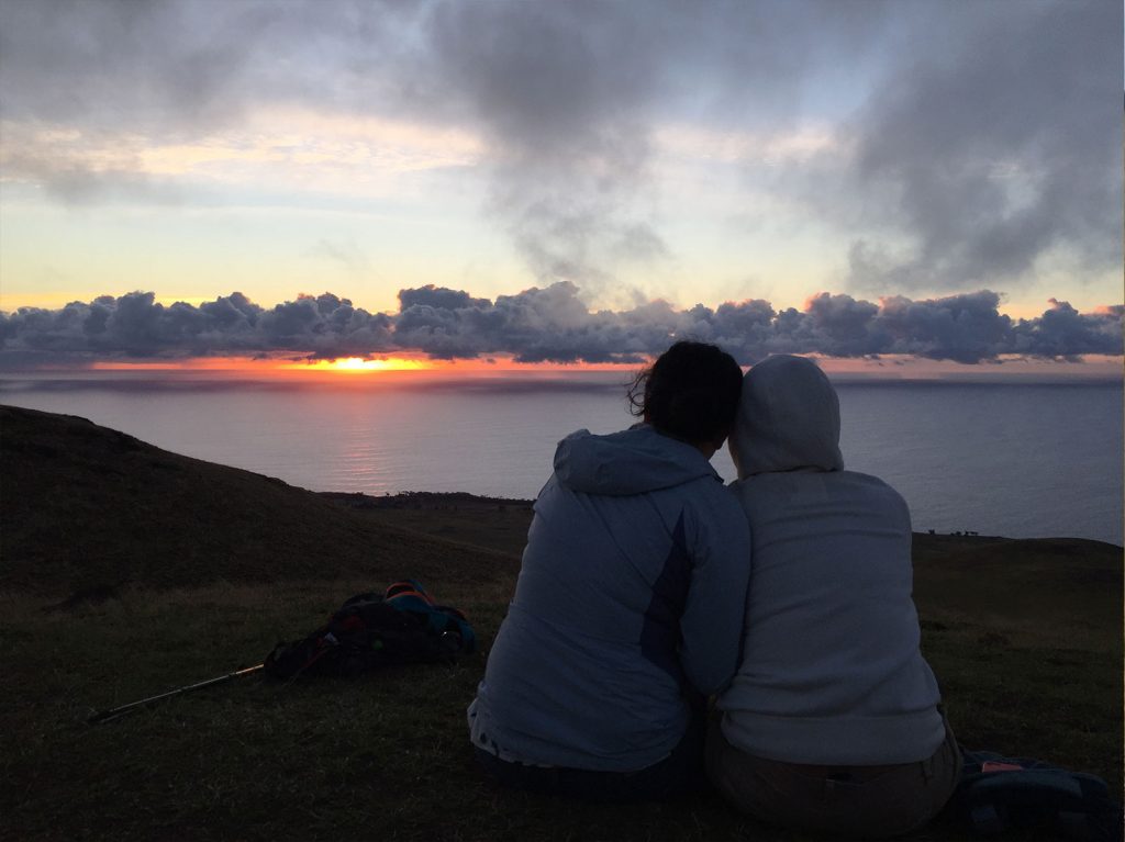 Una vez que lleguemos a la cima del volcán Maunga Terevaka, 500 mts de altura, disfrutaremos de las vistas del mirador junto con un atardecer, siempre que el clima lo permita, momento ideal para disfrutar de alguna historia junto a un snack. Terminado el atardecer, nos preparamos para el descenso nocturno, por la misma ruta, pero en esta ocasión en el camino nos acompañan las estrellas, lugar privilegiado para observarlas debido a la baja contaminación lumínica del lugar.