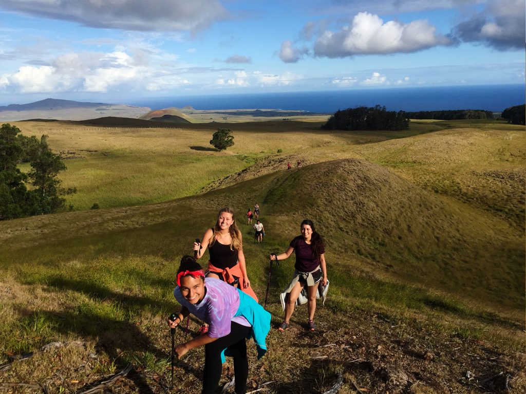 Estamos a medio camino observando el Maunga Rano Aroi, Volcán en cuyo interior posee grandes reservas de agua del sector. Momento ideal para un pequeño descanso antes de emprender el trekking al Maunga Kuma, para llegar a la cima del Terevaka, arriba las vistas en 360° de toda la isla y del Océano Pacífico, sentirás que estas en una pequeña Isla en medio de la nada en la inmensidad del mar.