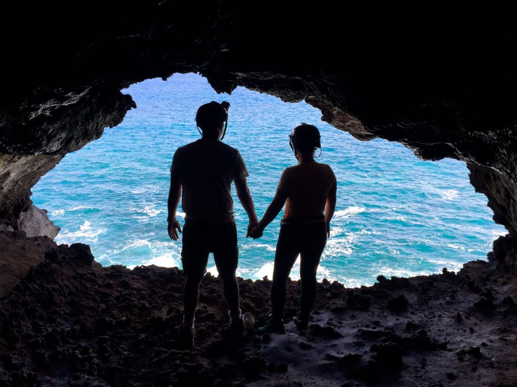 Otro infaltable de explorar, es la caverna de Ana Kakenga, conocida como «La caverna de las 2 ventanas«, dos ventanas, que para llegar a ellas hay que atravesar por su interior de 80 metros y así llegar al lugar donde se divide la caverna en dos, en este momento tienes que elegir tu ventana, cada una tiene una vista privilegiada al océano. Toda una aventura ha sido llegar hasta aquí y está es una excelente oportunidad de descansar contemplado el océano pacífico dentro de una caverna en medio de la nada.