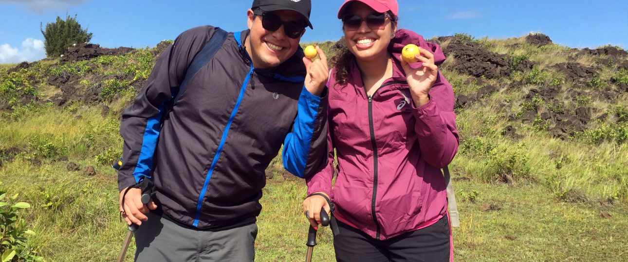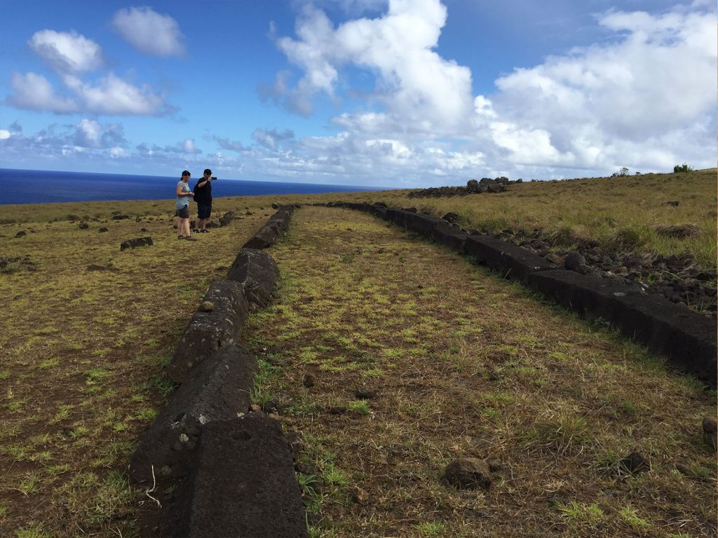La ruta es hacia Hanga o Teo, lugar de mucha arqueología y empinadas laderas del Terevaka. continuamos el trekking y un grupo de palmeras nos indican que estamos próximos a Papá Te Kena, un oasis en medio de un paisaje volcánico. continuamos bordeando la costa, hasta llegar a la Playa de Anakena.